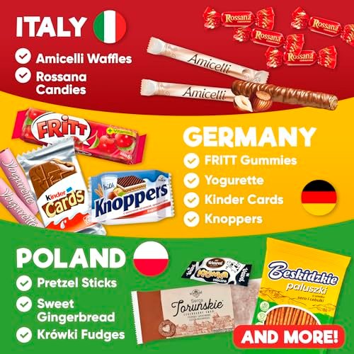 Exotic Candy Experience: Indulge in a captivating selection of exotic candy and foreign snacks that transport your taste buds on a European journey. Each piece in our international snack box variety pack is meticulously chosen to offer an authentic taste of European culinary artistry.