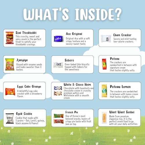 HIGH-QUALITY SNACK BOX—Our nutritiously delicious Asian snack box includes an assortment of 50 individually packaged single-serve snacks that are perfect for anyone, anytime, and anywhere. Packed with top brand-name snacks, there’s something for everyone to enjoy. This variety snack box contains beloved Korean candy, snacks, chips, cookies, and gummies you need to try. All snacks are individually wrapped and packed into our elegant snack gift box, making this convenient and ideal for gifting.