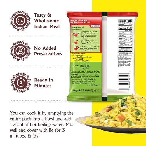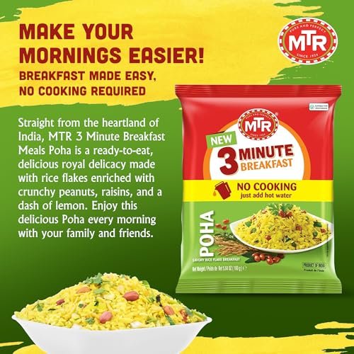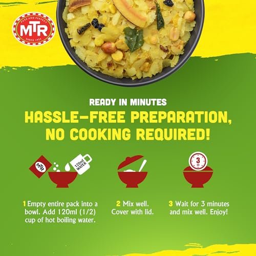 AUTHENTIC INDIAN FLAVOR IN JUST 3 MINUTES: MTR’s signature dish brings the rich and mouthwatering flavors of traditional Indian cuisine to your table, ready in just 3 minutes. Simply add hot water for a quick, delicious meal perfect for breakfast, lunch, dinner, or a snack.