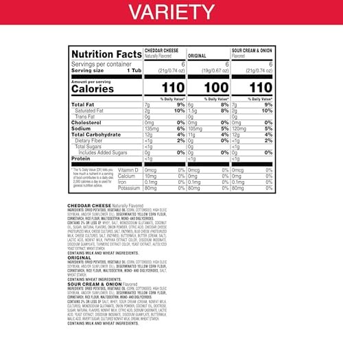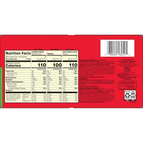 Crank up snacking moments with the outrageously delicious flavor of Pringles; Variety pack includes Cheddar Cheese, Original, and Sour Cream and Onion