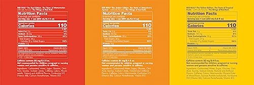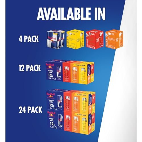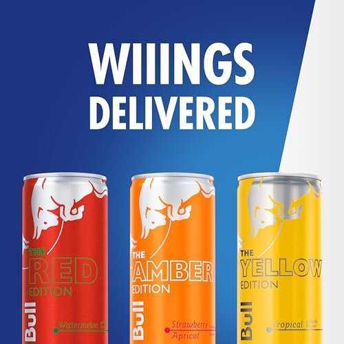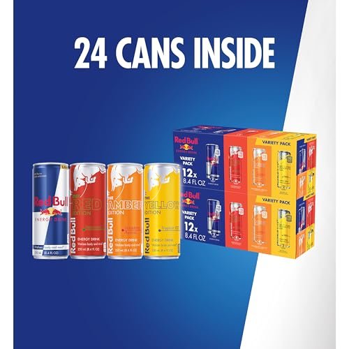 This Variety Pack includes 8 cans each of Watermelon, Strawberry Apricot, and Tropical; Red Bull features taurine, an amino acid, plus four essential B-group vitamins B3, B6, B12 and B5, which contribute to normal energy-yielding metabolism